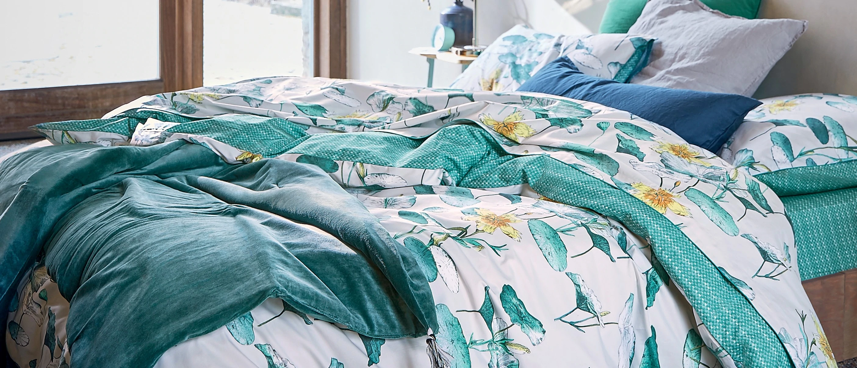 Dans la collection Bel Canto, les cacatoès facétieux trouvent refuge au milieu d'une végétation luxuriante. Leur vivacité contraste avec le vert émeraude, un duo de teintes de la nature. La housse de couette et la taie d'oreiller, au toucher satiné, dégagent un charme intemporel. Bel Canto vous invite à embrasser à la fois la couleur et la sérénité.