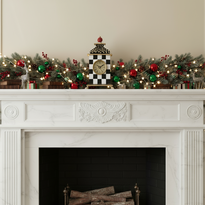 - Hand-painted wood with brass accents.